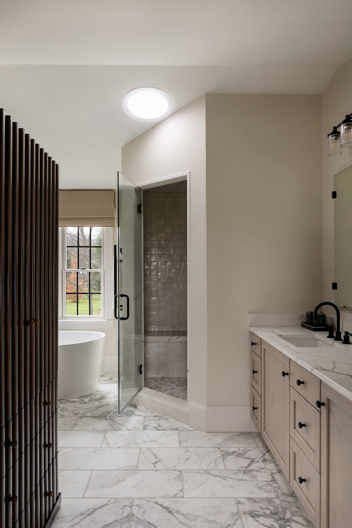 Welcome to this stunning transformation of a historic traditional home into a modern, contemporary residence. Our goal was to honor the original charm while introducing clean lines, open spaces and functional design elements. As life evolves, so does personal aesthetic and the way in which we interact with our homes. As we curate homes for individual clients, I am inspired to create spaces that mutually function and are beautiful. Honoring a historic home doesn’t necessarily mean restoring original details and functions. This renovation allowed the elements that were working in this century home to be featured while updating or modifying those that weren’t. We removed a staircase, opened the floor plan, invited natural light via new and enlarged windows and modernized finishes. Our team carefully crafted each room to serve the inhabitants with furnishings to completion. From the reimagined living area with a focal point sculptural fireplace to the custom kitchen with minimalist finishes and expansive views, and the artist studio with a bold wall-covered ceiling, every detail was crafted to blend timeless elegance with modern functionality and beauty. We are thrilled with how this space now tells a new story while respecting the past.