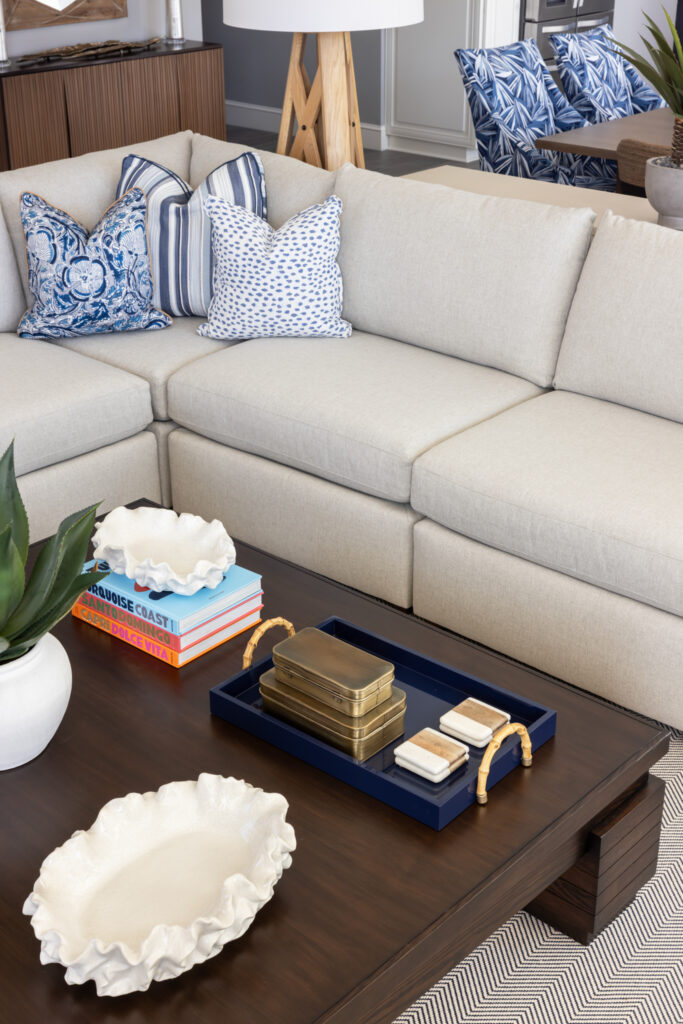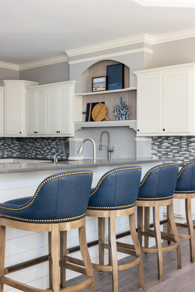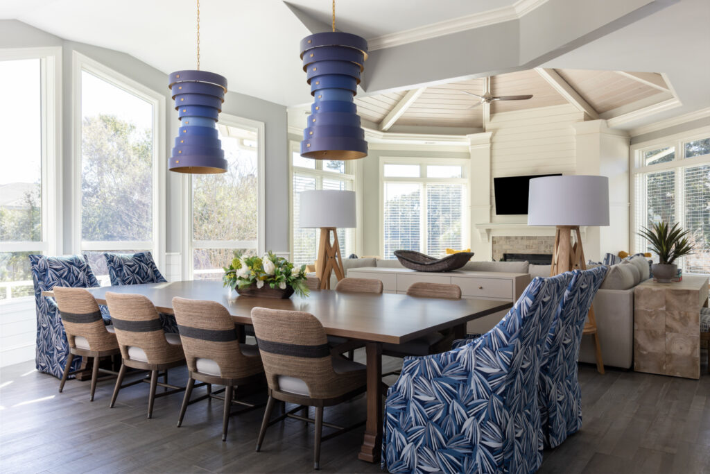 The design intent centered on honoring the home’s natural coastal foundation while layering in personality through furnishings, lighting, and color. Statement light fixtures, perfectly scaled furnishings and durable upholstery were specified to add character and warmth. Every selection was made intentionally to invite repeat visits year after year.