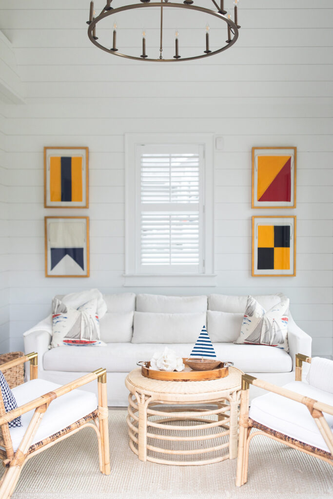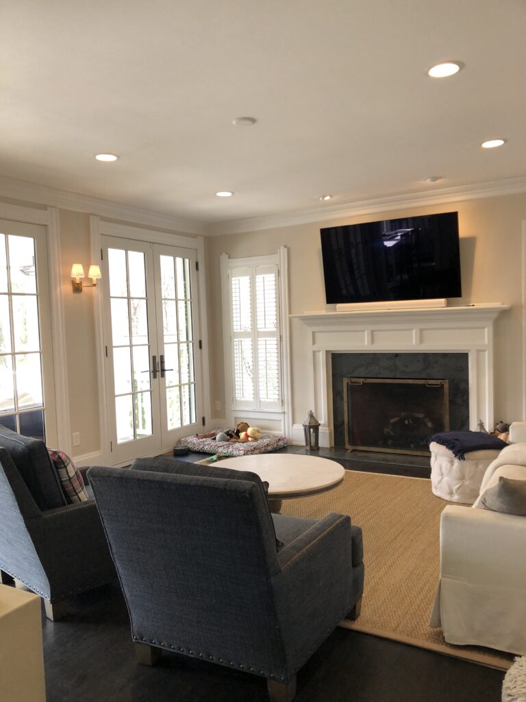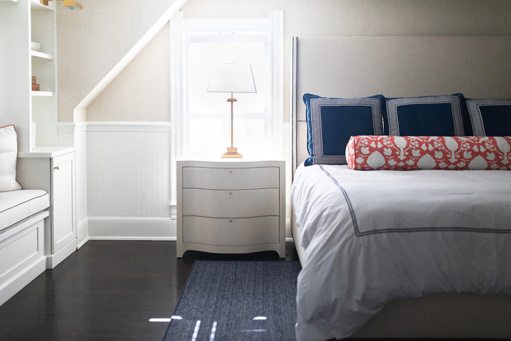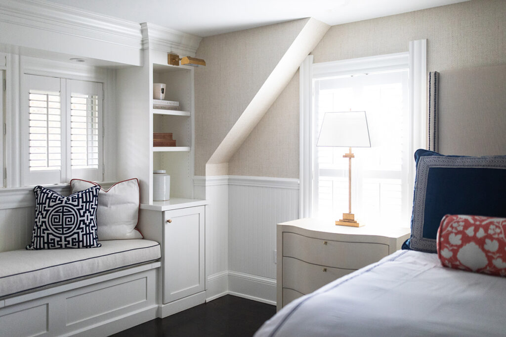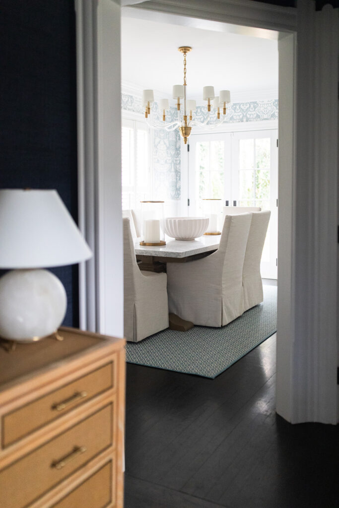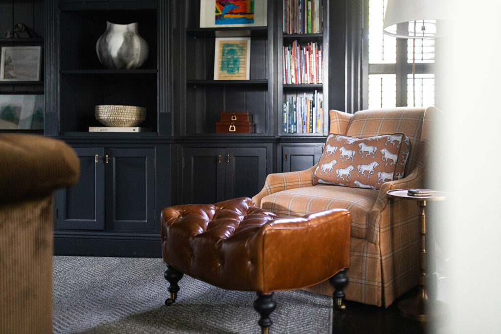 The aesthetic marries Cape Cod polish with Ralph Lauren-inspired equestrian warmth, the result is sophisticated yet approachable. Grasscloth wallcovering, layered navy textiles, tailored upholstery and warm brass tones layer against a backdrop of warm woods and crisp white trim. The result is a home that feels storied and grounded, yet fresh and effortlessly livable.